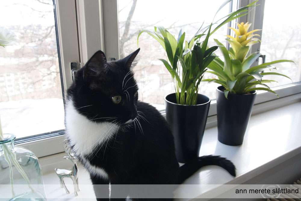 Plass i vinduskarmen er must for oss katteeiere! 🙂 Flink du er som syr og ordner!