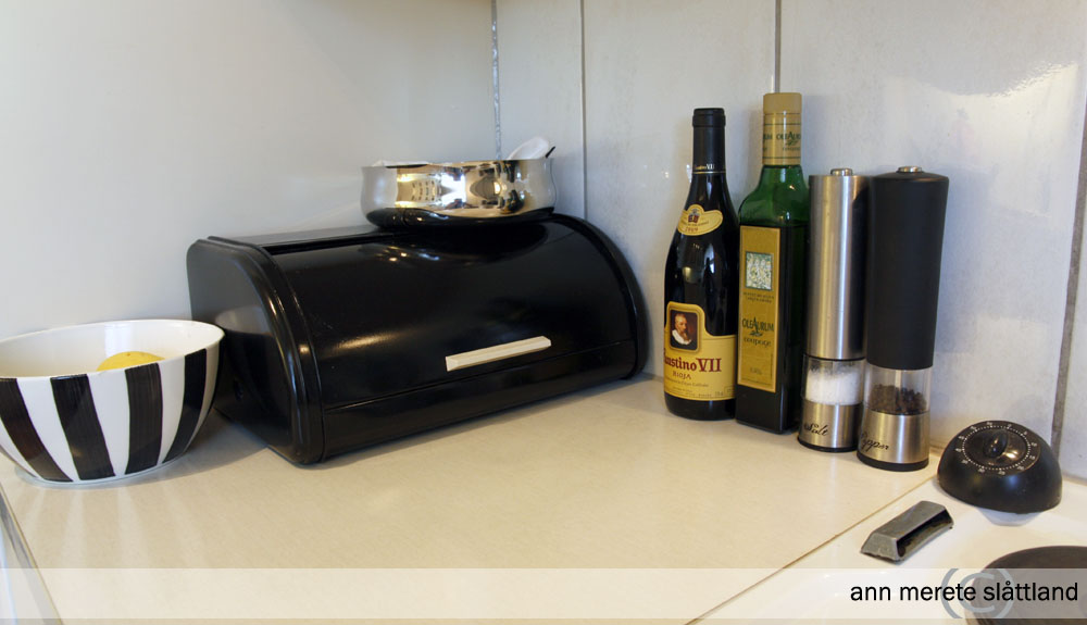 Jeg liker kjøkkenet vårt, men jeg er ikke helt fornøyd. Rommet skulle vært malt og vi ser for oss en tapet på veggen ved vinduet. Siden vi ikke eier leiligheten vi bor i, er det jo litt begrenset hvor mye man gidder å pusse opp, men noen små forbedringer her og der må til.