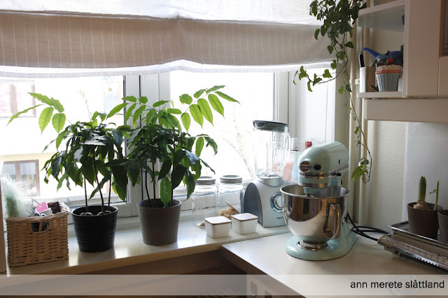 Så fint kjøkken du har. Mange herlige detaljer, som brettet, vekta, kjøkkenmaskina.
