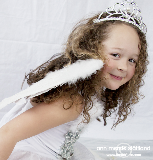 For et par uker siden hadde vi fotoshoot, og det var ganske kjedelig helt til godjenta fikk på seg englekostymet. Da var det INGEN problemer med posering og søte smil 🙂