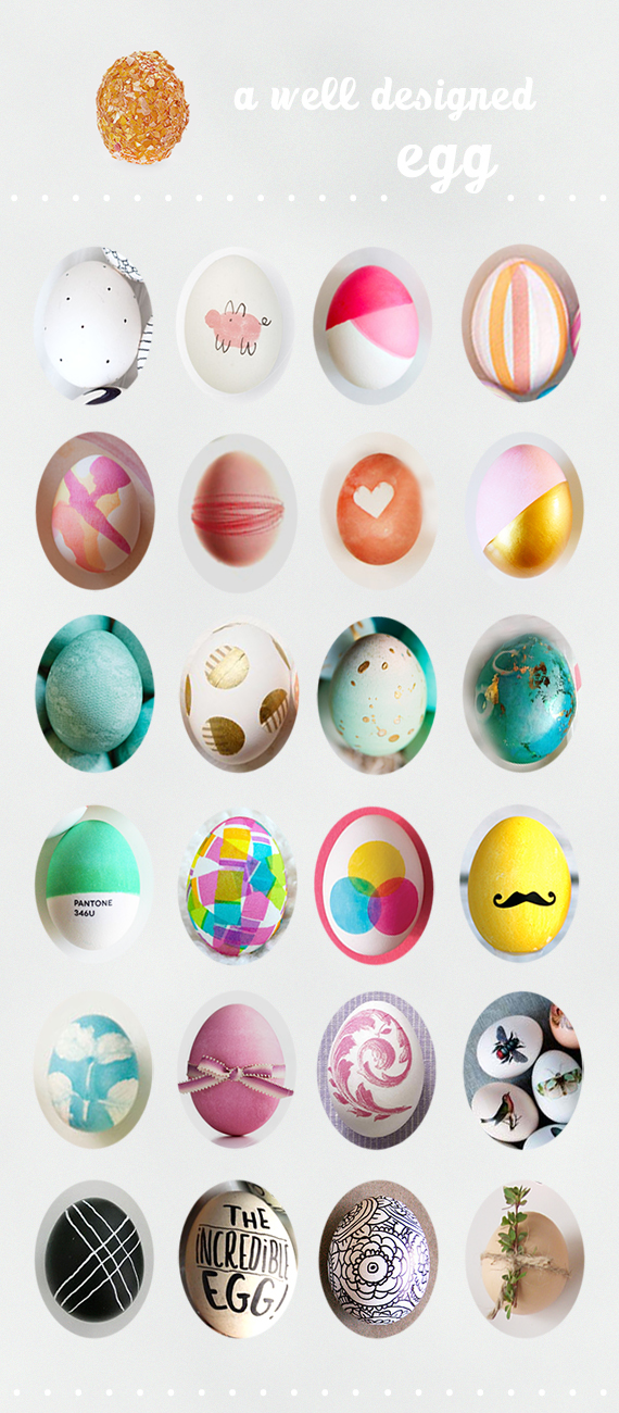 A lot of well designed eggs! Picture via hjartesmil, from the blog A Subtle Revelry. You find links to all the projects under the image at A Subtle Revelry.