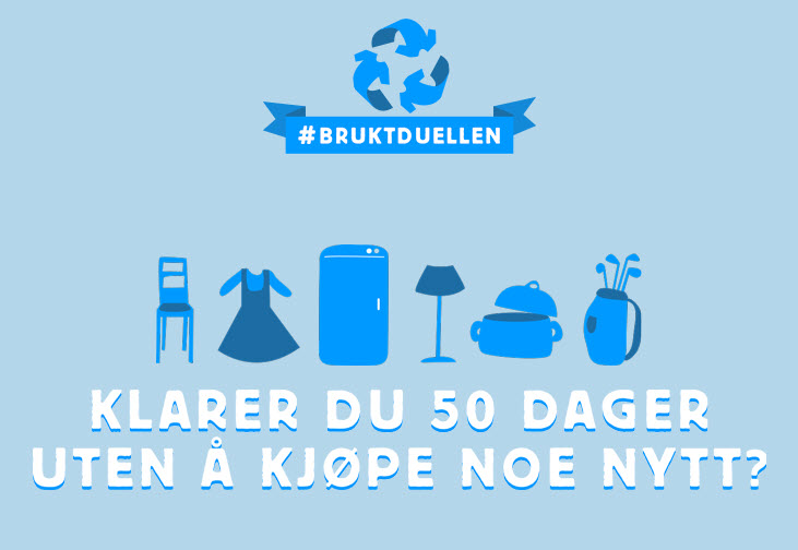 Nordmenn shopper mer enn noensinne. Økt forbruk av varer betyr økt forbruk av naturressurser. Derfor har FINN.no tatt initiativet til Bruktduellen – hvor du kan utfordre deg selv, en kompis eller kjæresten din til å ikke kjøpe noe nytt på 50 dager.