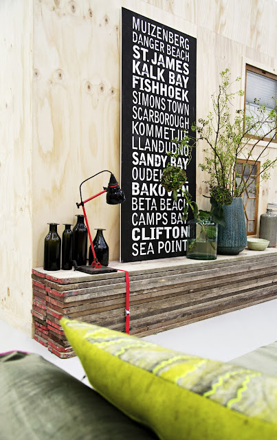 Her har de stablet masse gamle planker oppå hverandre og laget ei slags hylle, eller konsollbord – eller hva man skal kalle det? Stack boards, på engelsk. Ved å binde plankehaugene sammen med neonfargede strapper, og male endene på plankene i samme farge får man en helt egen stil på det. Og så er det jo bare å lage sitt eget stilleben med de tingene man liker aller best oppå?
